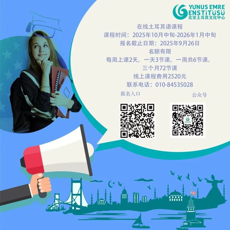 Online Turkish courses will be organized by Yunus Emre Institute in Beijing between mid-October 2025 and mid-January 2026 for a total of 72 hours.